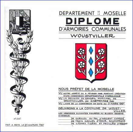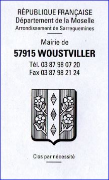 Le pal et les roses rappellent les anciens seigneurs, comtes de la Leyen et de Bliescastel, propriétaire du territoire de la commune. Les trois losanges bleus symbolisent les trois villages détruits pendant la guerre de Trente Ans qui s'élevaient sur le ban actuel de Woustviller: Hildemannsweiller, Bergweiller et Brühl.