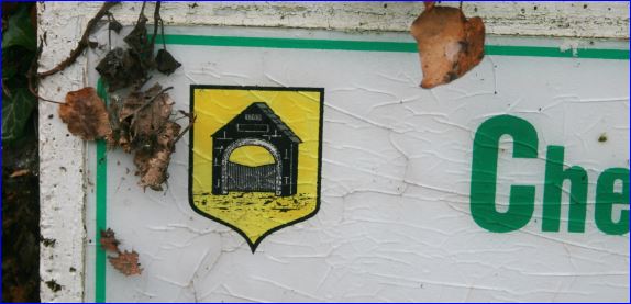 (1991) D'or au porche de sable au fronton en triangle, chargé d'une bannière d'or à l'inscription « 1763 » de sable.