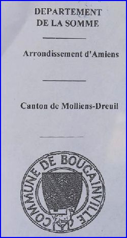 (1990) De sinople à trois fleurs à six pétales d'argent mal ordonnées; à la terrasse crénelée d'argent et maçonnée de sable.