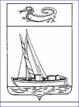 D'azur à la barque, la voile ferlée, d'or sur une rivière du champ; au chef cousu de gueules chargé d'un dragon aptère passant d'or.