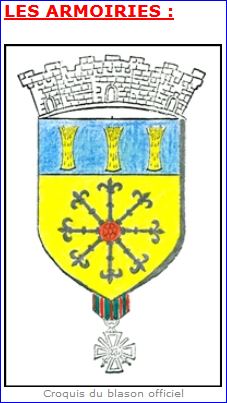 (1980) D'or à l'escarboucle de sable chargée en coeur d'un rubis de gueules; au chef d'azur chargé de trois gerbes de blé d'or.