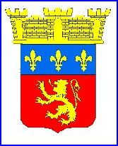 De gueules au lion d'or; au chef d'azur chargé de trois fleurs de lis d'or.
