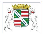 (2002) Écartelé: aux 1er et 4e de sinople à la bande d'argent chargée de cinq losanges aboutées d'azur et accompagnée de deux étoiles d'or, aux 2e et 3e d'argent à deux fasces de gueules.