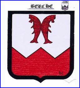 Coupé émanché de deux pièces: au 1er d'argent à deux bars adossés de gueules, au 2e de gueules plain.