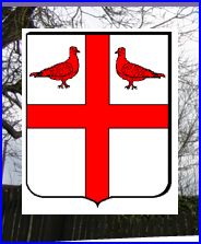 D'argent à la croix de gueules cantonnée en chef de deux colombes affrontées du même.