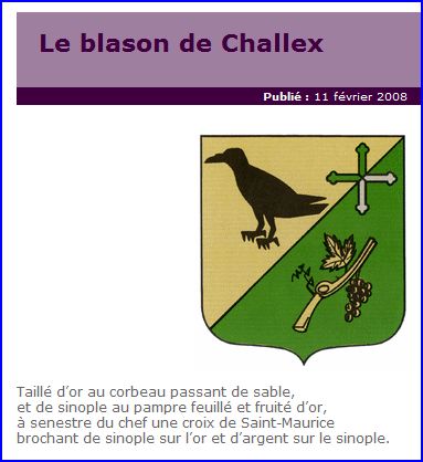 Taillé: au 1er d'or au corbeau passant de sable, au 2e de sinople au pampre feuillé et fruité d'or; à la croisette tréflée au canton senestre du chef, brochant sur le taillé, de sinople sur le 1er et d'argent sur le 2e.