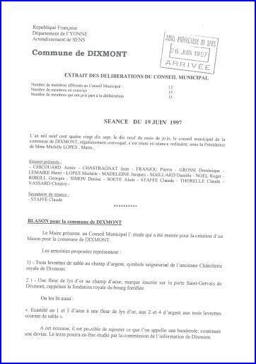 Extrait de la délibération du Conseil Municipal du 19 juin 1997.