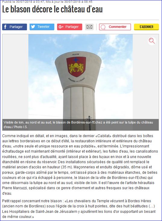 Article de presse La Dépêche du 30 juillet 2018, (site du journal).