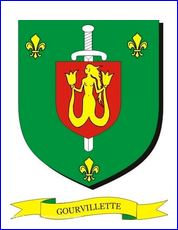 De sinople à l'épée basse d'argent accompagnée de trois fleurs de lis d'or; à l'écusson de gueules chargé d'une sirène de deux queues d'or brochant en abîme.