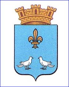 D'azur à deux colombes affrontées d'argent surmontées d'une fleur de lis d'or.