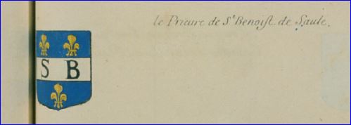 D'azur à la fasce d'argent chargée des lettres capitales S et B de sable, accompagnée de trois fleurs de lis d'or.