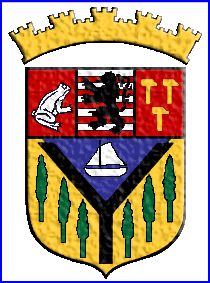 (v. 1900) Tiercé en pairle, au 1er d'azur à la nef habillée d'argent, aux 2e et 3e d'or à trois peupliers coupés de sinople, rangés en bande au 2e et en barre au 3e ; au pairle alésé de sable brochant sur la partition ; le tout sommé d'un chef tiercé en pal, au I de gueules à la grenouille assise, contournée, d'argent, au II burelé d'argent et de gueules, au lion de sable brochant, au III de gueules à trois marteaux d'or.