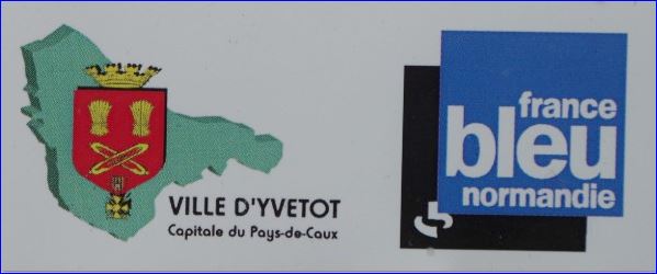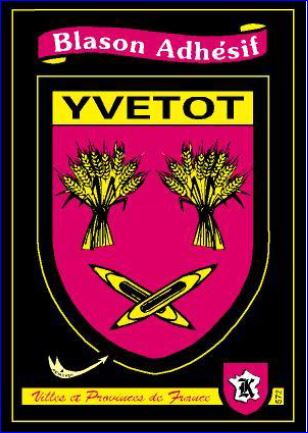 de gueules aux deux gerbes de blé en chef et aux deux navettes passées en sautoir en pointe, le tout d’or». Les deux navettes et les deux gerbes de blé rappellent la tradition agricole et textile de la ville. L’ensemble a été placé sous une couronne murale de quatre créneaux, symbole de l’ancienne royauté, puis principauté yvetotaise. On ajoutera, à la pointe de l’écu, la Croix de Guerre décernée à la ville le 11 novembre 1948.