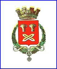 d’or surmonté d’une étoile d’argent à dextre sur le champ, le tout sous une couronne murale à cinq créneaux».