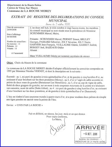 Délibération du Conseil Municipal du 3 octobre 2008.