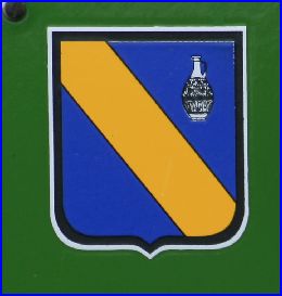 D'azur à la bande d'or accompagnée en chef d'une carafe d'argent.