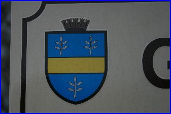 D'azur à la fasce d'or accompagnée de trois feuilles de noyer d'argent.
