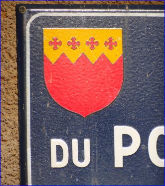 De gueules plain; au chef denché d'or de quatre pièces, chargé de quatre croisettes recroisetées de gueules.