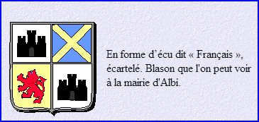 Écartelé: aux 1er et 4e d'argent au château donjonné de sable, maçonné du champ, au 2e d'azur au sautoir d'or, au 3e d'or au lion de gueules.