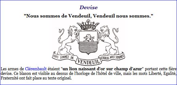 Devise: « Nous sommes de Vendeuil, Vendeuil nous sommes ».