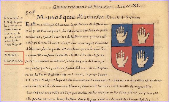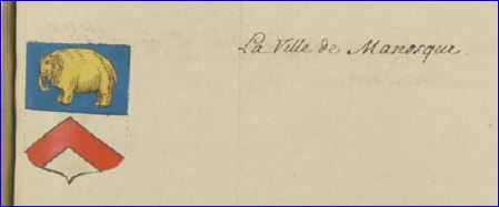 Armorial de Pierre de La Planche, 1669. La description des provinces et villes de France, extrait. Bibliothèque du Musée Condé de Chantilly.
