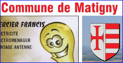 abbé Paul de Cagny (Histoire de l'arrondissement de Péronne, 1864) on peut supposer que le premier parti est une allusion à la commanderie (ou "maison de l'Hôpital") d'Eterpigny et le second la reprise des armes de Jean de Callendre (ou Calandre), demeurant à Crépy-en-Laonnois (02) et co-seigneur du domaine de Matigny vers 1580 avec le chapitre de la cathédrale de Noyon. Bien qu'ayant été de tous temps en possession des moines hospitaliers, la commanderie d'Eterpigny (80), déjà notée en 1158, a toujours eu localement et dans de nombreux écrits la réputation d'avoir constitué une fondation templière, d'où sans doute l'usage de cette croix. La commanderie d'Eterpigny, d'après un bail de 1621, percevait encore une redevance en grain ainsi que la grosse dîme sur 37 journaux de terre labourable situés à Matigny. Vers 1580, Jean de Callendre, écuyer, co-seigneur du lieu, portait: d'argent à trois fasces de gueules. S'il a existé une famille de Matigny, dont Pierre, chambellan et grand écuyer de Charles IV Le Bel, seigneur de Moligneaux (80), il semble qu'on n'ait pu retrouver les armes de cette famille.