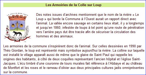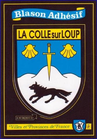 D'azur à la montagne de trois coupeaux d'argent, chargée d'un loup de sable, surmonté d'une épée versée d'or brochant sur le coupeau médian et accostée de deux coquilles du même en chef.