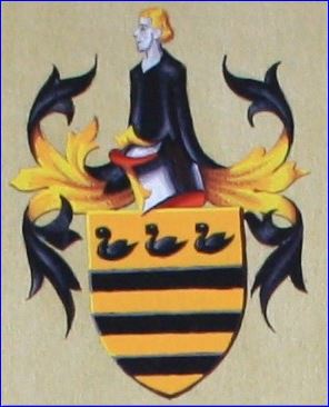 D'or au hêtre de sinople; au chef du même chargé de trois merlettes d'argent.
