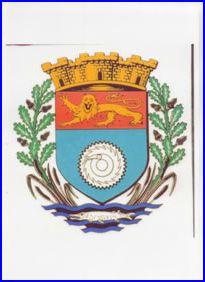 D'azur à la roue dentée à cliquet d'argent; au chef cousu de gueules chargé d'un léopard d'or armé et lampassé d'azur.