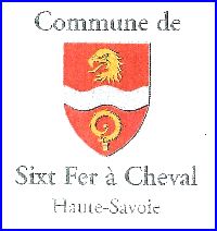 (1995) De gueules à la fasce ondée d'argent accompagnée en chef d'une tête d'aigle d'or et en pointe d'une crosse du même mouvant de la pointe.