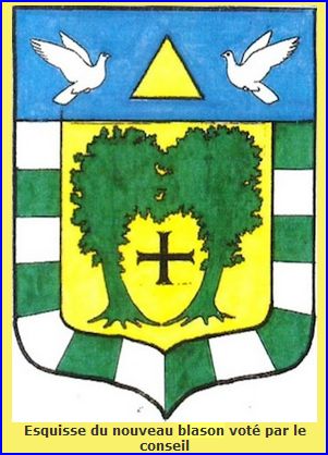 (2011) D'or à la croisette ancrée de sable accostée de deux chênes de sinople; à la bordure componée d'argent et de sinople; au chef d'azur, brochant sur la bordure, chargé d'un triangle d'or accosté de deux colombes essorante et affrontées d'argent.