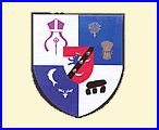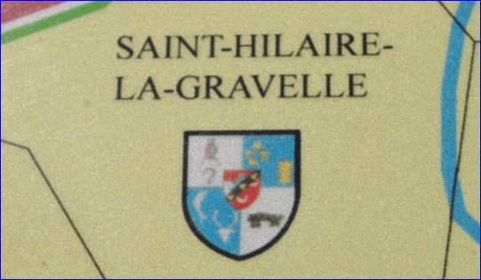 (1990) Écartelé: au 1er d'argent à la mitre de pourpre croisée du champ, soutenue d'une tête de crosse d'évêque de pourpre, au 2e d'azur à la grappe de raisin et à la gerbe de blé, le tout d'or, rangées en bande, au 3e d'azur à la truite courbée contournée en pal et au rencontre de cerf, le tout d'argent, également rangés en bande, au 4e d'argent au dolmen de sable; sur le tout, mi-taillé: au I d'argent au chef de gueules et au lion d'azur armé, lampassé et couronné d'or brochant, au II de gueules à trois croissants d'argent, à la barre de sable, chargée de trois coquilles d'or posées dans le sens de la barre, brochant sur la partition.