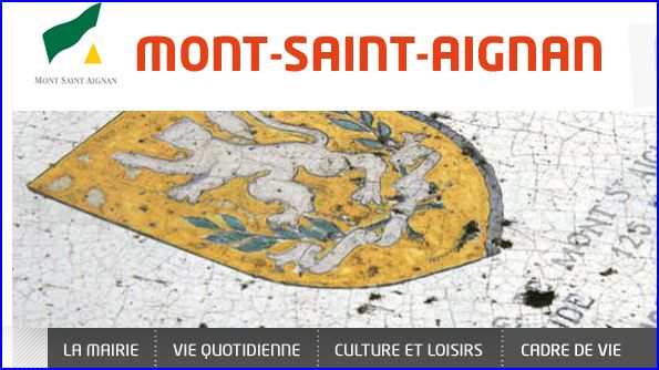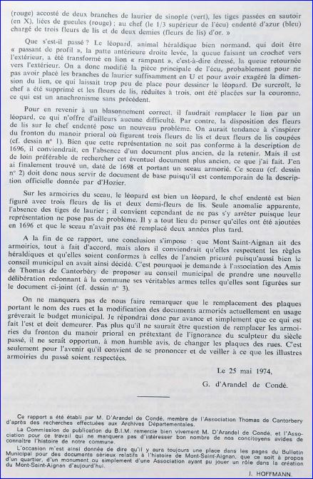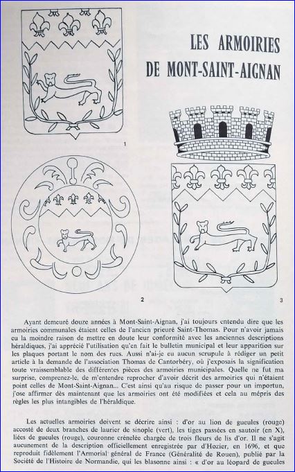 (1974) D'or au léopard de gueules accosté de deux branches de laurier de sinople, les tiges passées en sautoir, liées de gueules; au chef endenté de trois pièces et deux demies d'azur chargé de trois fleurs de lis et deux demies d'or.
