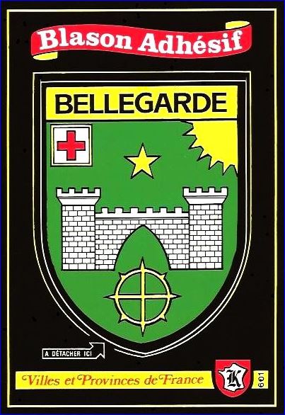 (1946) De sinople à la porte de ville ogivale défendue de deux tours d'argent, hersée du même, ouverte et ajourée du champ, maçonnée de sable, surmontée d'une étoile d'or et soutenue d'une roue de moulin du même; au franc-canton dextre d'argent chargé d'une croisette de gueules; au soleil couchant d'or rayonnant de trois éclairs brochants de l'un en l'autre.