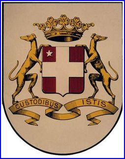 De gueules à la croix d'argent cantonnée en chef dextre d'une étoile d'or.
