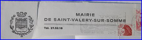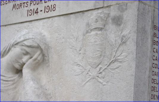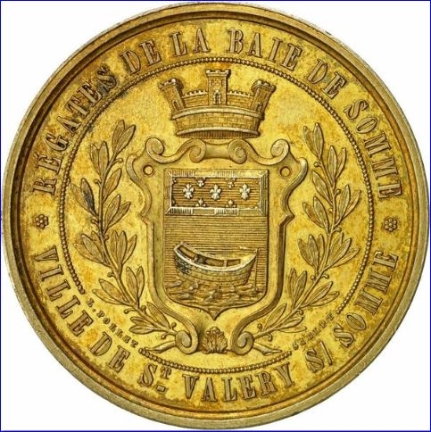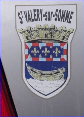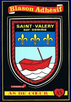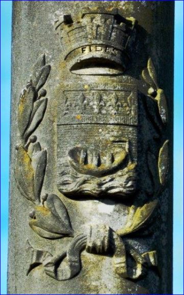 Blason sculpté sur la colonne d'une tombe du cimetière de Saint-Valery-sur-Somme, concession à perpétuité "offerte" par la ville à la famille Paume, pour acte de bravoure. En effet, lors d'une violente tempête, en 1882, les deux frêres Paume, marins pécheurs, se sont noyés en baie de Somme en voulant porter secours à leur oncle.(Photo André Guerville, 2016, aimablement transmise par Jacques Dulphy)