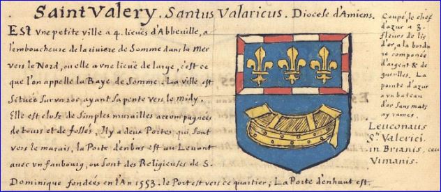 (1725) D'azur à la nacelle d'or voguant sur des ondes d'argent; au chef semé de France, à la bordure componée d'argent et de gueules.