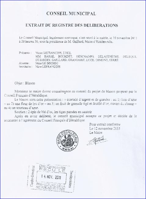 Extrait du registre des délibérations du 10 novembre 2011.