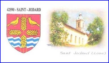 De gueules à la fasce abaissée et ondée d'argent chargée de deux ondes d'azur; à quatre épis de blé d'or les tiges appointées en croix, brochant sur le tout et accompagnés en chef de deux alouettes affrontées d'or.
