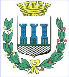 D'argent à trois tours d'azur, ouvertes et maçonnées de sable, rangées en fasce et posées sur une terrasse de sinople.