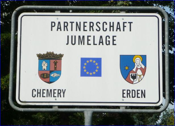 Panneau de jumelage à Erden, Allemagne.