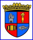 (1967) Écartelé: au 1er d'azur au château couvert en croupe et flanqué à senestre d'une échauguette d'argent, ouvert et ajouré de sable, au 2e de gueules à la torche enflammée d'or, au 3e de gueules au baril couché d'or cerclé de sable, au 4e d'azur au poisson d'argent.