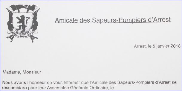 Papier à entête de l'Amicale des sapeurs-pompiers, 2018.