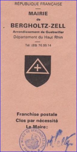 (1972) De gueules au triangle d'argent, évidé du champ, enfermant une croisette d'argent.