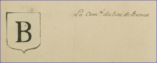 D'argent à la lettre capitale B de sable surmontée de l'inscription « BROVES » du même.