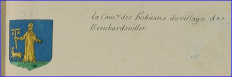 Coupé: au 1er d'argent au tau d'azur posé sur le trait de partition et à deux clochettes du même appendues aux extrémités de ses branches, au 2e de sinople plain.