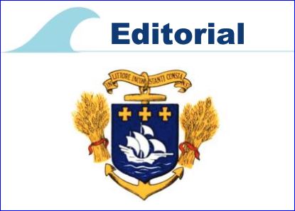 D'azur au trois mâts contourné d'argent, voguant sur une mer du même, surmonté de trois croisettes d'or rangées en fasce.