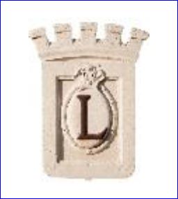 D'argent à la lettre capitale L d'azur enfermée dans un collier de perles du même (mis en orle).