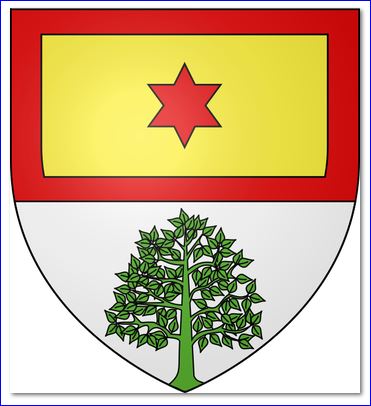 Coupé: au 1er d'or à l'étoile à six rais de gueules et à la bordure du même, au 2e d'argent à l'arbre terrassé de sinople.