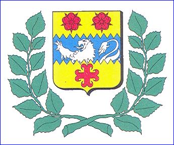 (2000) D'or à la fasce dentelée d'azur chargée d'un lion issant d'argent, accompagnée en chef de deux angemmes de gueules et en pointe d'une croisette ancrée du même.